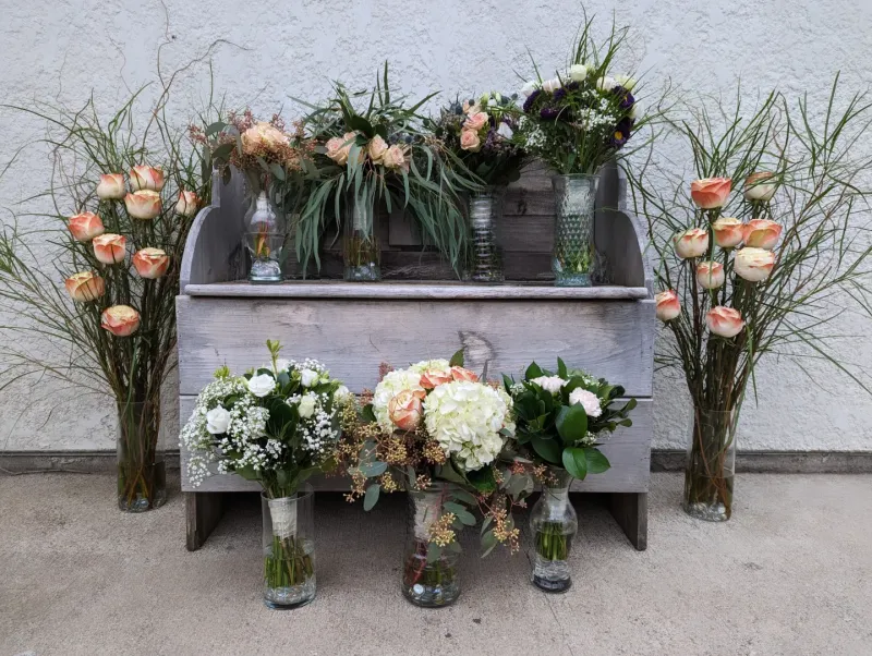 Amanda with Lavender and Lace Floral LLC is an independent, self taught florist that handles the entire process herself. She's a pediatric nurse by day, florist by evening and weekends. The benefit of working with Amanda means you will only need to worry about one point of contact throughout the entire process and there is no storefront. Amanda works on those pretty flowers out of her home, which cuts down on overhead costs. That also means she's perfect for a couple that's looking for the core wedding arrangements, or a small to moderate amount of floral arrangements.
