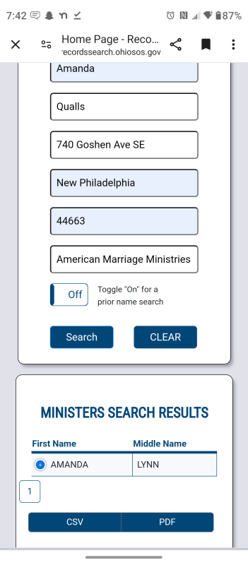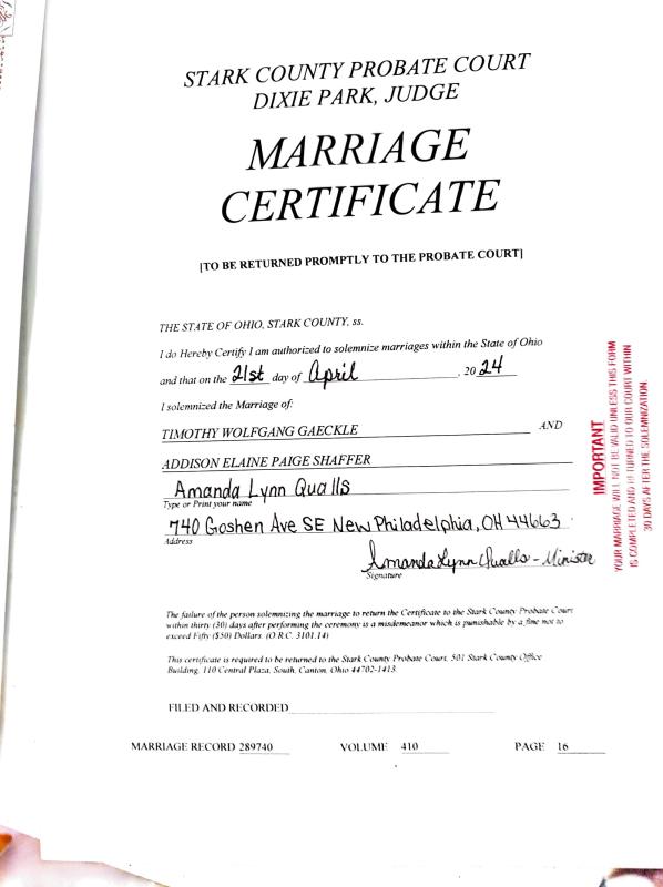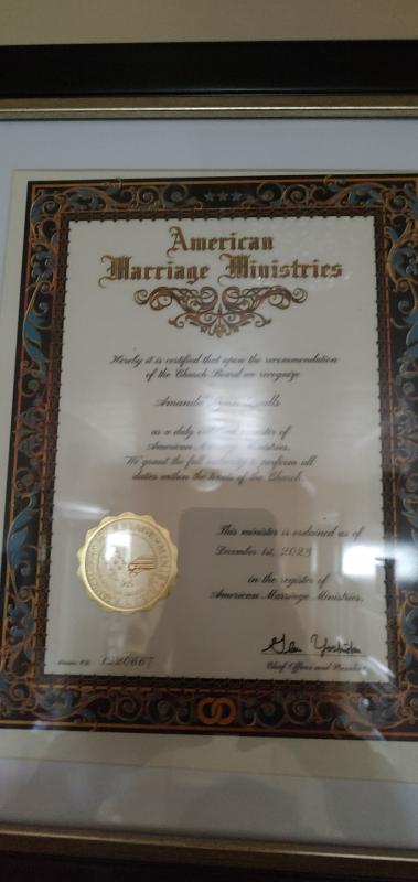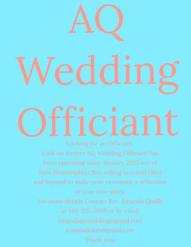 Amanda is self taught, solo wedding officiant working from home, offering a variety of ceremonies with no discrimination. Appointments are required, with at least 2 hours notice for last minute ceremonies. Amanda stays in contact through text, phone, email and video chat for up to 4 months before the ceremony. Ceremony start at $300 depending on your preference. Clients are encouraged to leave a Google review and photos of the ceremony will be posted on social media. Contact Amanda at 740-575-5909 for details and booking.