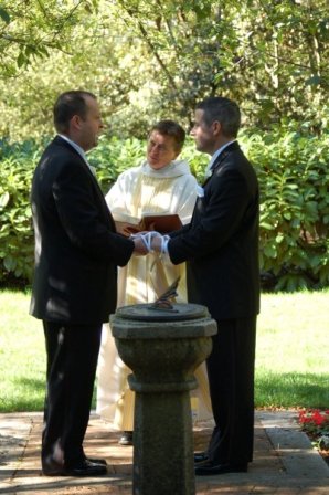 Tie the knot, jump the broomstick, smash a glass, dance down the isle and have your puppy bring the rings (well, maybe not all those things in one ceremony, but, we could try...). I truly enjoy weddings / holy unions/ handfastings and feel deeply honored when I'm invited to celebrate love with people in love. I excel at simple and sweet but can be as complicated as as you need me to be. Your ceremony can be formal (traditional, leather or lace), or informal, high church, low church or no church. It's your ceremony, your love, your committment. A small intimate gathering or a large one, I've done lots of both, indoors and out. Non-traditional famlily group? fine. What's your idea? Tell me your story. Let's talk about celebrating.