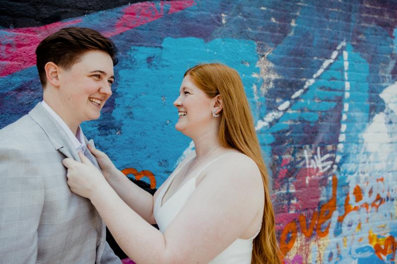 We are Rob and Sam of Dutcher Photography, a queer & ally owned LGBTQ-friendly business! We're personable and friendly, quirky and colorful. We love tacos, tattoos, and wildly in love couples. We particularly love working with queer and offbeat couples! We specialize in candid, photojournalist-style wedding photography, and telling your love story with real, joyful, and intimate imagery!