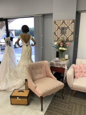 WE have fabulous Designer wedding dresses both off-the-rack and orderable. Additionally, we have access to Vendors carrying pantsuits. Tuxedo rentals are available and our in-house alterations department is here to give you a perfect fit. Appointments are necessary but easily booked online at www.Gypzytoz.com