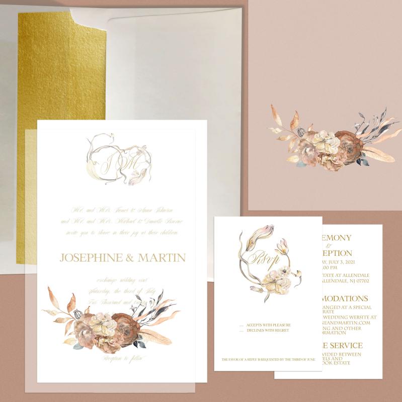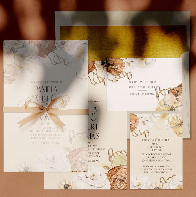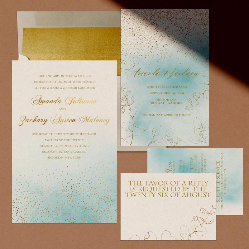 We can also design other components of your wedding suite, such as save-the-dates, thank you cards, and other day-of-the-wedding items.